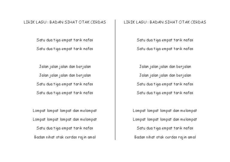 Ejercicio De Lirik Lagu Badan Sihat Otak Cerdas